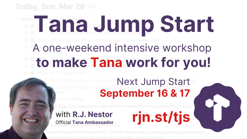 A few days before the workshop, I'll share some "Getting Ready" steps to make sure we're set to dive in when our Tana Jump Start weekend arrives!